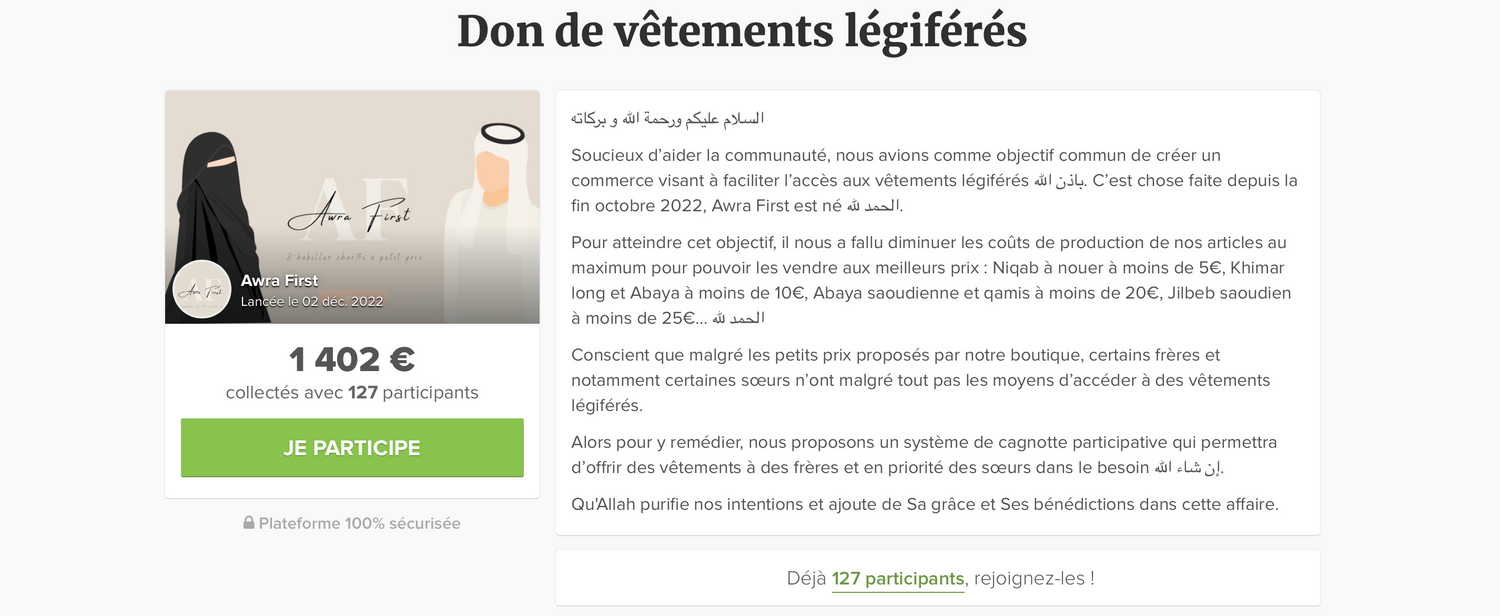 Grâce à vos dons, nous avons la possibilité d’offrir des tenues légiférées complètes à nos sœurs dans le besoin (sans marge).